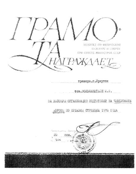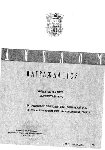 Мне выпала честь представить Вам книгу Почетного мастера спорта СССР, Заслуженного тренера СССР Маргариты Францевны Волькенштейн, чье имя и достижения в стрелковом спорте широко известны в нашей стране.